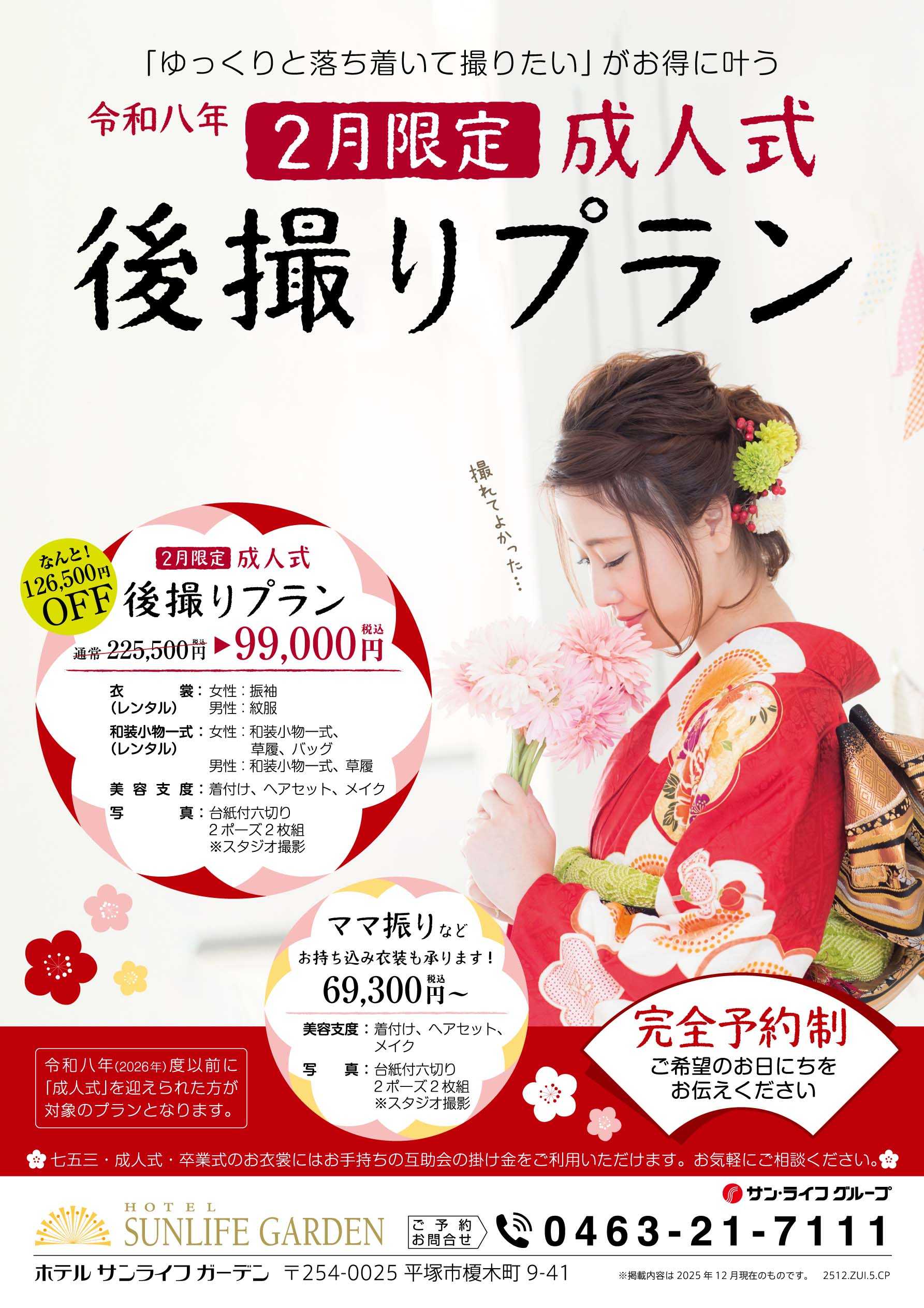 こちらは通常225,500円(税込)のプランが、令和8年2月までにご撮影の方ですと、